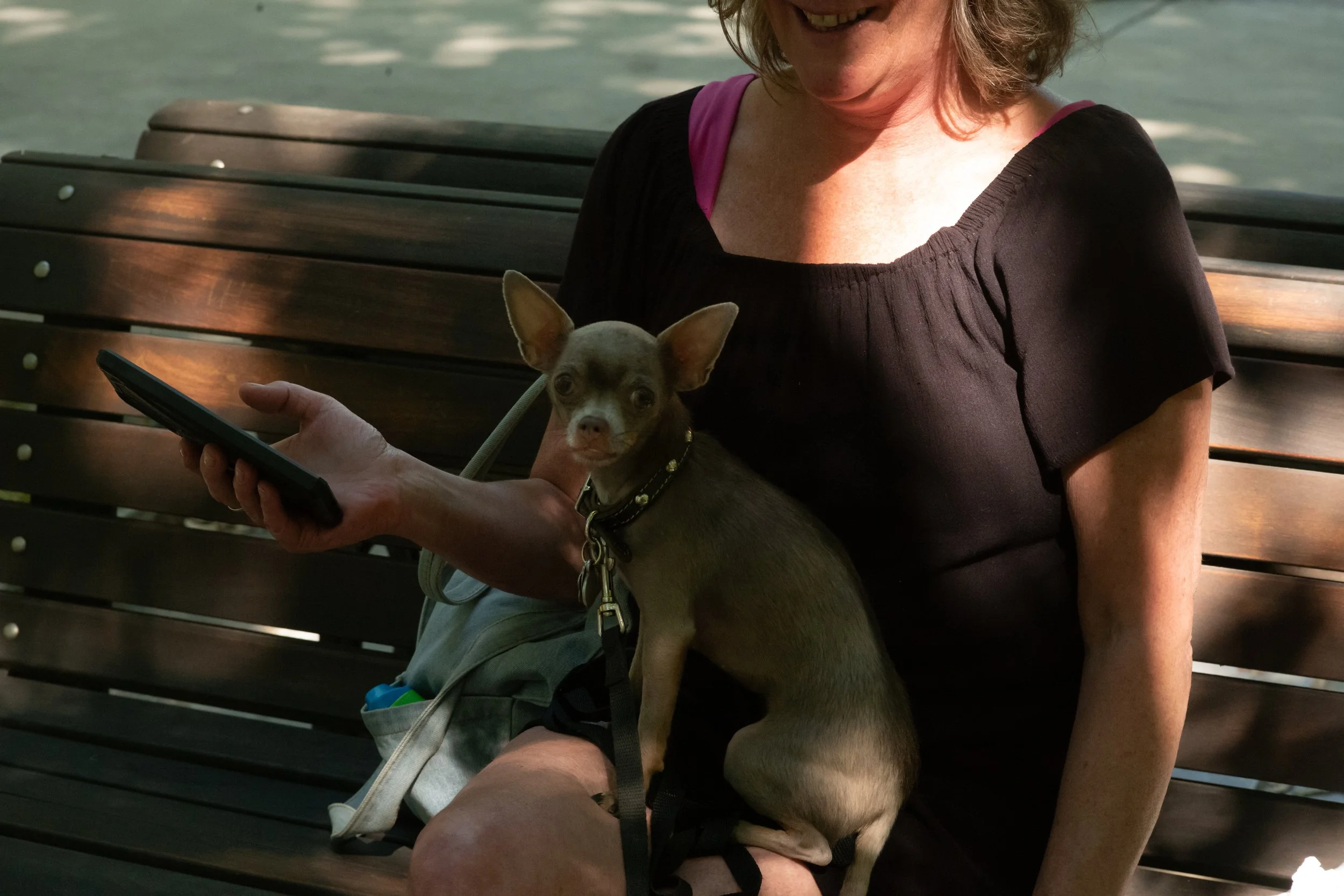 Le Boss : Je suis une introvertie, timide comme on disait autrefois. Je ne le cache pas. Quiconque me connaît personnellement sait que je n'ai pas de facilité à parler aux gens. Demander une photo à un inconnu (ou même à une personne que je connais) n'est donc pas une tâche facile, ce qui, je le réalise, complique un peu ma vie de photographe de rue. J'ai entendu Henri Cartier-Bresson dire il y a longtemps : « J'hais les gens et j'aime les gens », ce à quoi je m'identifie totalement. Je ne peux pas ignorer ma personnalité, alors je m'entoure de « règles » : je veux faire de la photographie de rue pour illustrer notre vie et notre époque, comme un photographe historien, et à ce titre, il ne faut pas interférer. C'est une véritable règle pour moi, mais si je suis honnête, c'est aussi une excuse pour ne pas parler ou demander aux gens de les photographier. Certaines personnes disent : « Plus on le fait, plus ça devient facile », non, ce n'est pas vrai ; en tout cas, pour moi, c'est même le contraire.